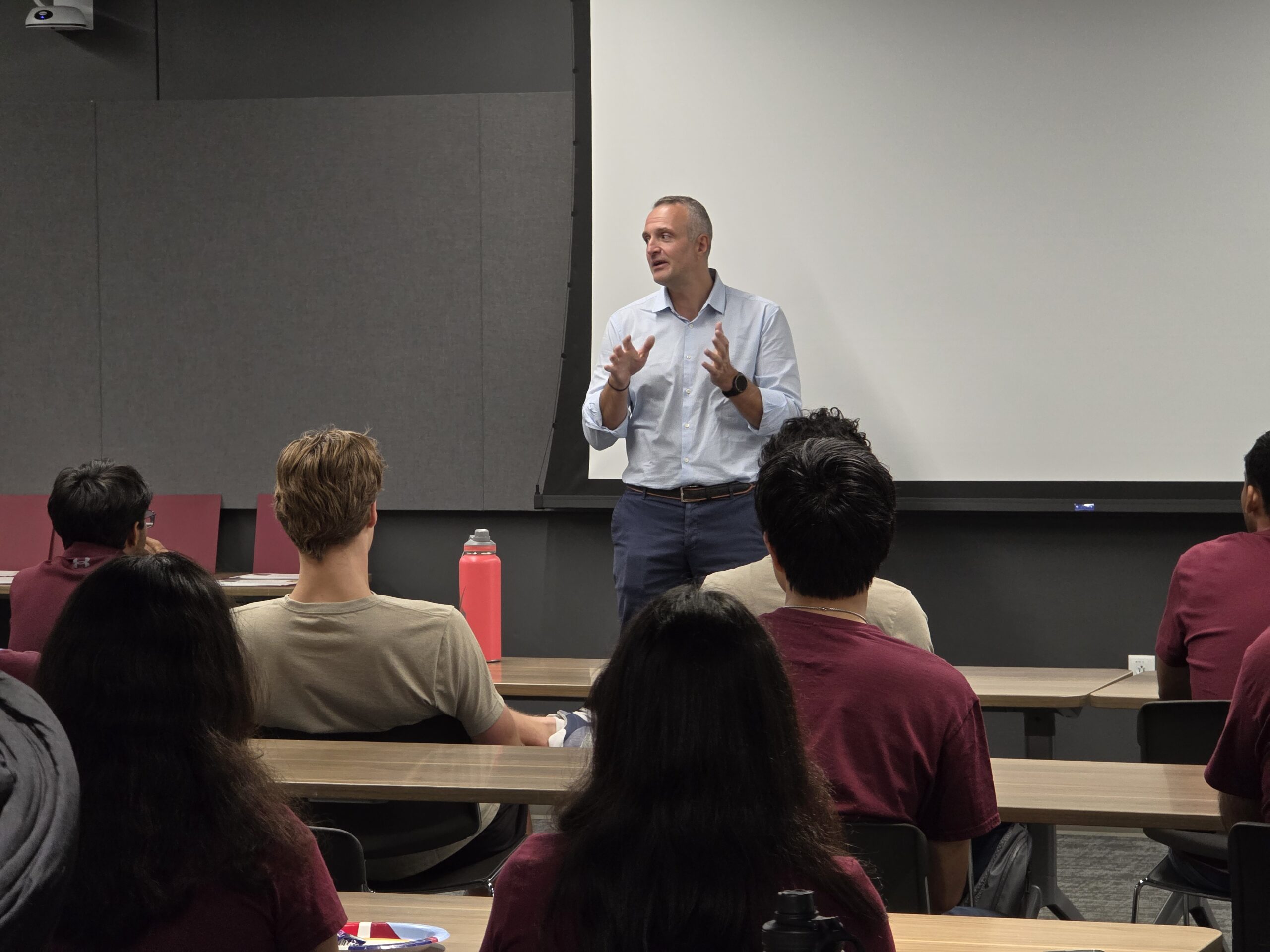 Andreas Symeonidis of Aristotle University offers at lecture at Texas A&M University
