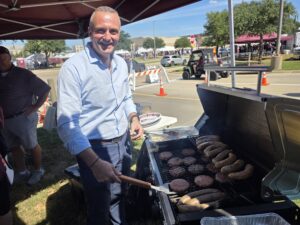 Andreas Symeonidis of Aristotle University gets a taste of tailgating culture at Texas A&M University gameday.