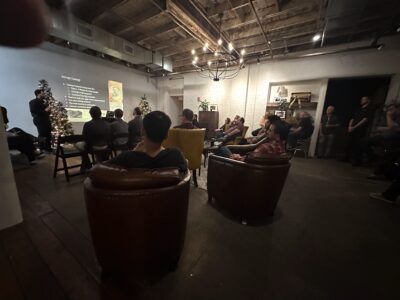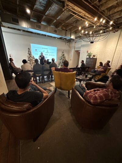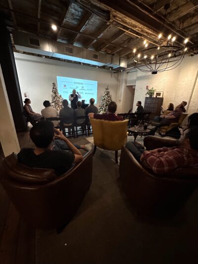In partnership with the Innovation Underground and Ice House on Main, AdventGX is delighted to bring Developer’s Cartel tech talks back to Historic Downtown Bryan after a hiatus. The November tech talk featured Ismail Hosain, who offered an update on Star Forge Foundry. A large crowd gathered to enjoy the Christmas ambiance in the newly opened Parlor at Ice House on Main, the new home for the monthly gathering.